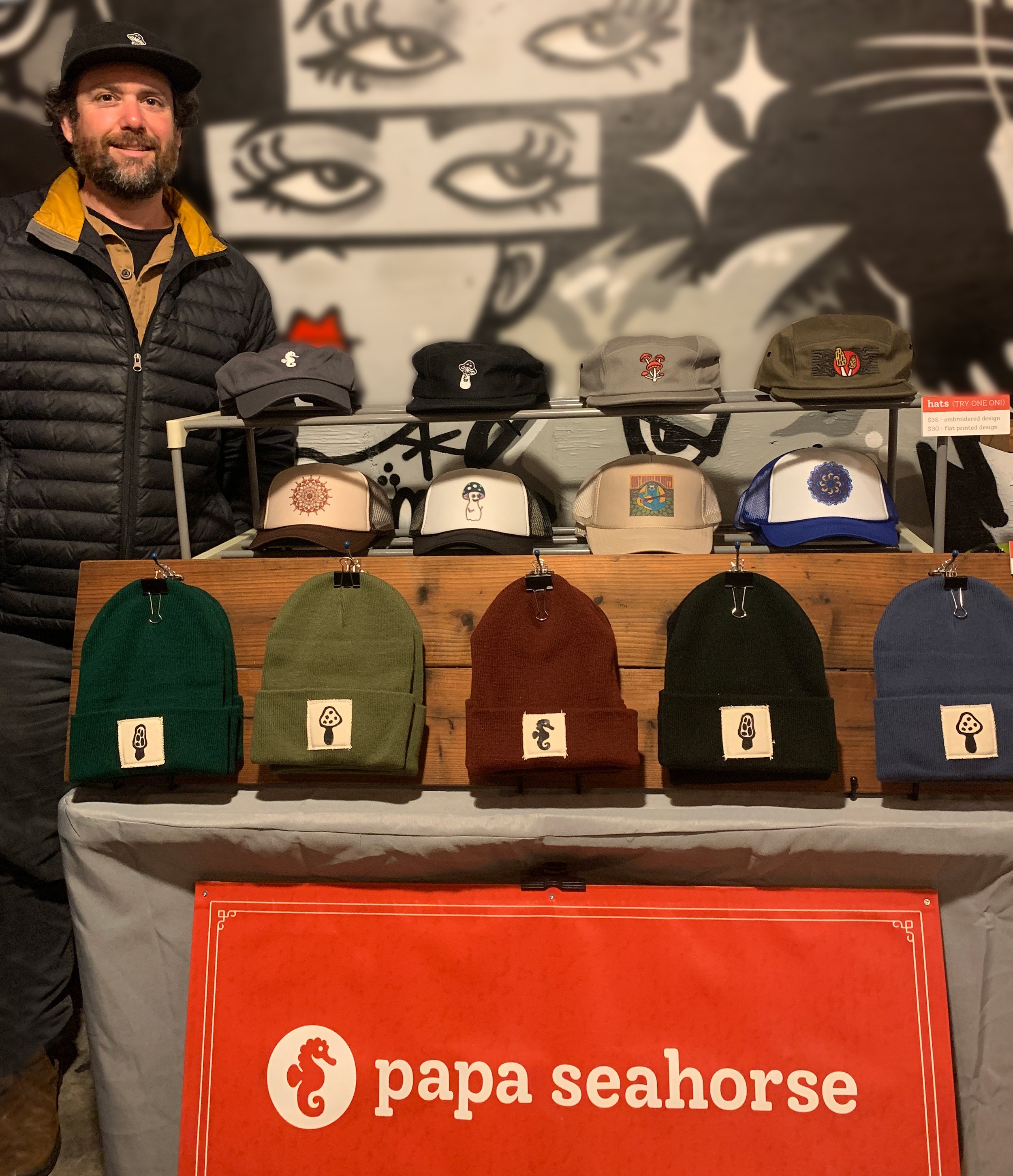 I spend a lot of time designing and printing merchandise. I sell my work at craft markets in the Bay Area. Linocut printing is my latest obsession. My garments are mostly up-cycled and I apply my designs to denim jackets, shirts, sweaters and beanies. Check out my shop to see what I’ve got!